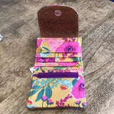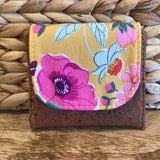Vous êtes à la recherche d'un accessoire pratique, original et coloré? Le voici! Ce portefeuille mince pourra trouver sa place dans toutes les bourses. Il est fait de coton et de liège, un matériau renouvelable et végan semblable au cuir. Il comporte 3 espaces pour les cartes, 2 pour les billets (pliés) et 1 poche zippée pour la monnaie.