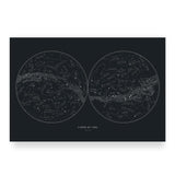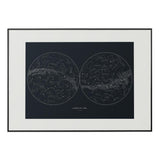 Cette carte du ciel illuminera vos nuits. Les principales constellations des deux hémisphères ainsi que la voie lactée sont représentées sur cette magnifique illustration dessinée à la main.
