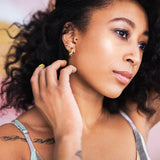 Or : Boucles d'une circonférence de 0,7 cm et d'une largeur de 1 mm, fait en métal plaqué or, puis un papillon or.