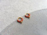 Petites boucles d'oreilles cercle avec une bille et un détail de fibre réalisé un tout petit noeud à la fois par la technique du micro-macramé.