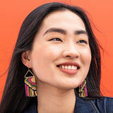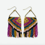 Ces boucles captivantes arborent un design unique qui marie formes géométriques et fluidité des franges, pour un accessoire aussi élégant qu’original. Suspendues à un triangle en laiton, les franges perlées délicates descendent en cascade, apportant mouvement et texture. À chaque pas, elles ondulent avec grâce, captant la lumière et ajoutant une touche de glamour à votre allure.