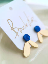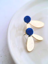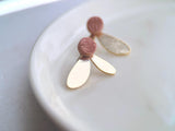 Les boucles d'oreilles comportent 3 pièces: le clou en argile, la pièce ''deux pétales ainsi qu'un papillon à mettre derrière l'oreille après le grand cercle. Vous pouvez ainsi choisir de simplement porter les clous d'oreilles avec les papillons pour des boucles d'oreilles plus sobres.