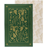 L’un des torchons arbore un vert forêt profond, orné d’un motif raffiné inspiré des merveilles nocturnes — champignons, lunes et le vol gracieux des chouettes. Le second, sur fond blanc éclatant, présente un motif répétitif de chouettes en plein vol, ajoutant une touche céleste et fantaisiste à votre cuisine. Ensemble, ces torchons apportent la sérénité du ciel nocturne dans votre intérieur.