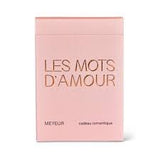 LES MOTS D’AMOUR est un cadeau d’expression amoureuse incluant 52 cartes ayant chacune une phrase à compléter à la main pour exprimer toutes les manières que vous avez d’aimer votre partenaire.