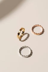 Pour garder le placage intacte le plus longtemps possible, il est important de garder la bague à l’abri de l’eau, du parfum, des lotions ou des produits ménagers. Le placage peut s’en aller progressivement et la bague deviendra argent.