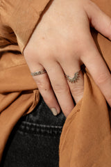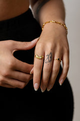 Pour garder le placage intacte le plus longtemps possible, il est important de garder la bague à l’abri de l’eau, du parfum, ou des lotions. Le placage peut s’en aller progressivement et la bague deviendra argent. La version qui est déjà argent est à l’épreuve de l’eau.