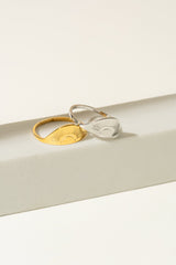 Plongez dans l'imaginaire avec la bague "Utopie". Sa gravure délicate représente un croissant de lune éclairé qui capture l'esprit d'un rêve éveillé.