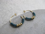 Anneaux d'oreilles présentant un joli détail minimaliste en micro-macramé de couleur noir, orné de 3 volumineuses billes en laiton. Les boucles d'oreilles Isis combinent subtilement charme exotique et élégance contemporaine.