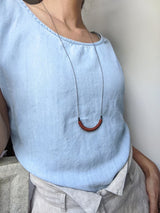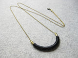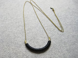 Collier pendentif long avec chaîne en acier inoxydable foncée et tube noir en laiton.