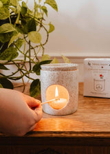 - Allumez une bougie à réchaud et placez-la à l'intérieur du diffuseur.