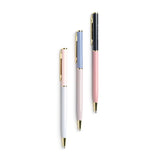 Le design élégant et robuste de ces stylos les rend parfaits pour ces notes et faire des croquis à l'encre. C'est l'outil essentiel pour donner vie à vos idées. Chaque stylo à bille est conçu avec un corps en métal coloré avec des accents dorés. Le corps mince du stylo arbore un look soigné et contemporain.
