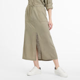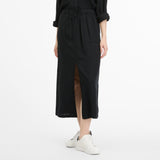 Cette jupe midi avec fente est une ode à la féminité en mouvement. Sa coupe mi-longue ajustée sur les hanches, puis légèrement évasée vers l’ourlet, crée une silhouette élégante et harmonieuse qui sublime toutes les morphologies. La fente latérale, savamment placée, allonge visuellement la jambe tout en offrant une démarche fluide et naturelle.