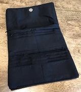Ce portefeuille signé Mademoizèbre offre durabilité et look classique. Alors qu'on retrouve à l'extérieurune cuirette noire de qualité, l'intérieur présente une touche de classique avec son tissus uni.