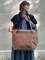 Tote bag à bandoulière réglable en canevas ciré doublé avec un canevas en coton épais pour une bonne tenue et une meilleure résistance !