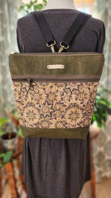 Sac Nini liège | kaki fleurs étoilées | Origamy