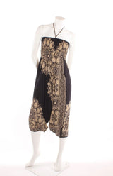 - Peut aussi se porter en jumpsuit : Remontez la bande de taille à la poitrine et nouez le cordon au cou