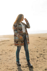 Le manteau Kaila est parfait pour la saison automnale. Fait d’un tissu jacquard 100 % polyester, il est doux, chaud et confortable. Son motif géométrique lui donne un style unique et moderne.