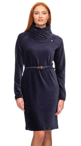 La robe sweat vegan BELLITA de ragwear attire tous les regards grâce à son tissu velouté. Sa coupe droite offre un confort optimal, et vous pouvez facilement l’ajuster à votre silhouette grâce à une fine ceinture tressée. Son col châle haut asymétrique et plissé, ainsi que ses manches raglan longues avec poignets élastiqués, en font une pièce idéale pour l’automne et l’hiver. Selon votre style, cette robe longueur genou peut se porter aussi bien lors d’occasions plus habillées que pendant vos moments de détente.